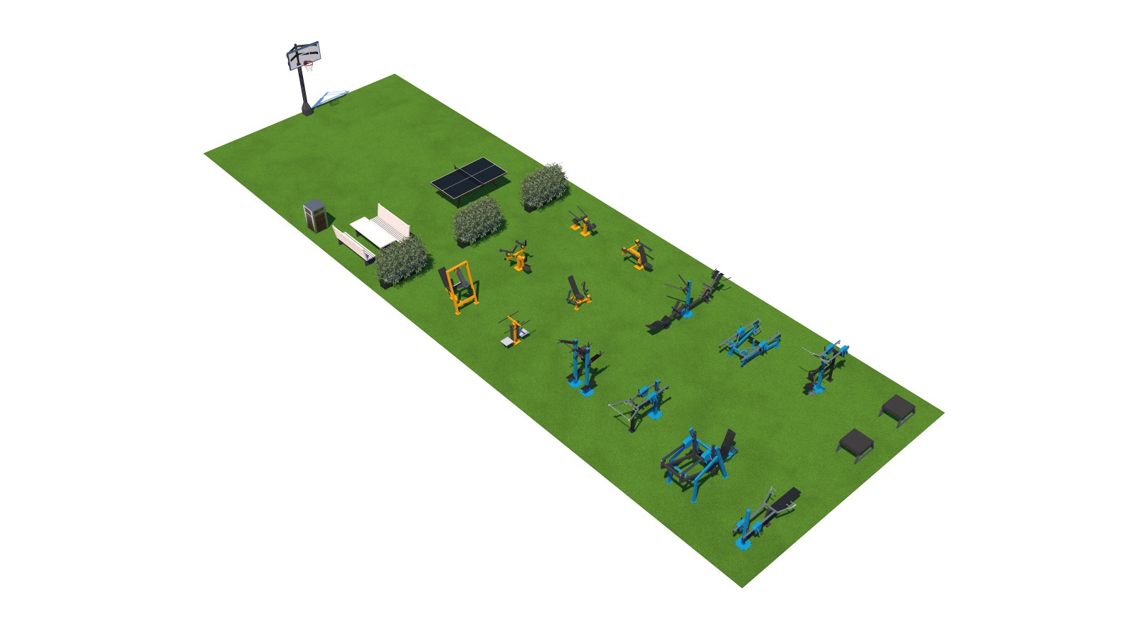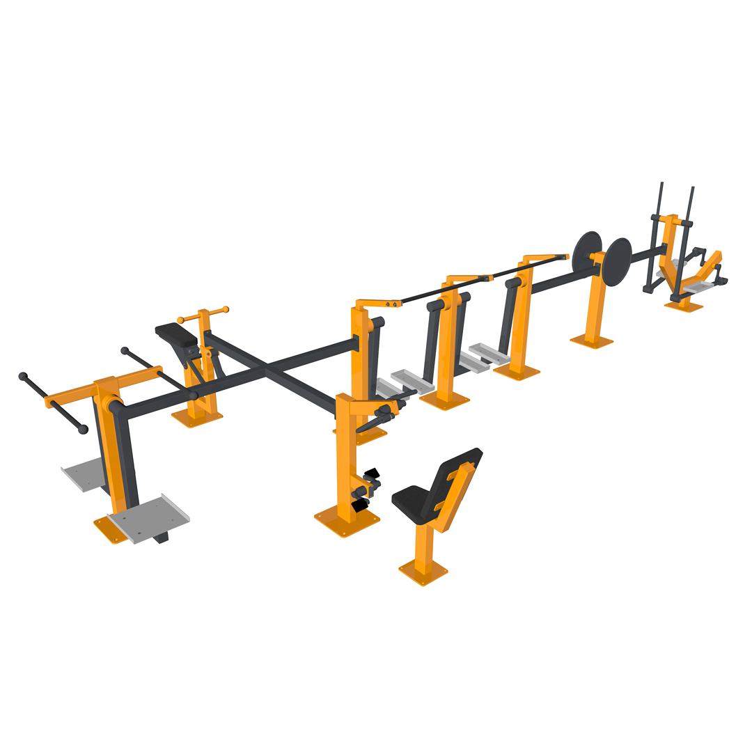 Treeninglinnaku seadmete vahe vastab ohutusala nõuetele (150cm). Selliselt mahub ühele alale rohkem treeningseadmeid.